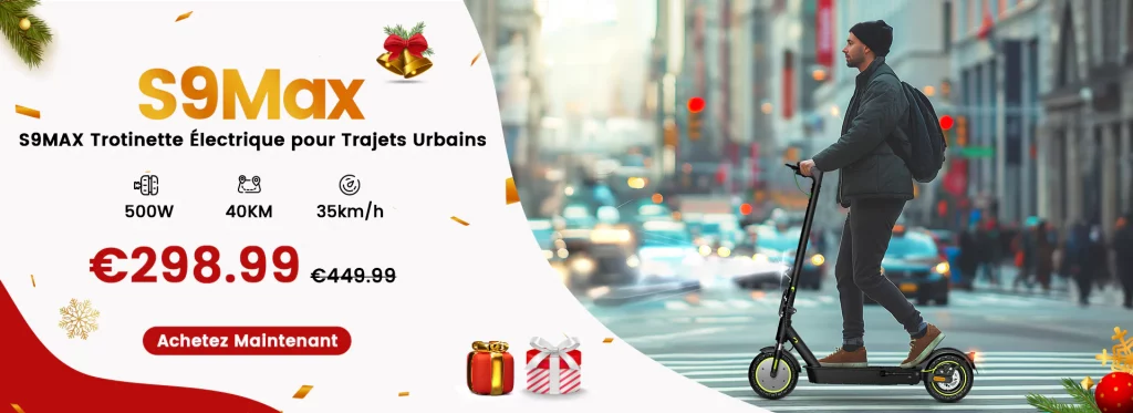 Exemple : La S9MAX, habituellement vendue à 449,99 €, revient actuellement à 298,99 € durant ces soldes de fin d’année. Et si vous ajoutez le code promo XMas8%, la trottinette vous revient à environ 275 €. Une économie totale de 174,99 € sur le prix de base ! C’est le moment de vous faire plaisir ou de faire plaisir à vos proches.